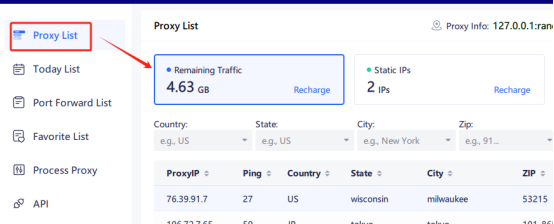 1. Enter the proxy list interface, and select the package you need to use (take the dynamic residential proxy as an example here).