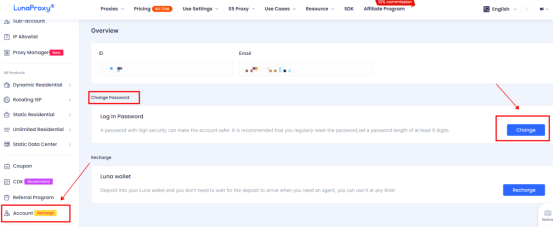 1. In the navigation bar on the left side of the [Overview] interface, find [Account] and click to enter the account interface, then click [Modify] to change the password