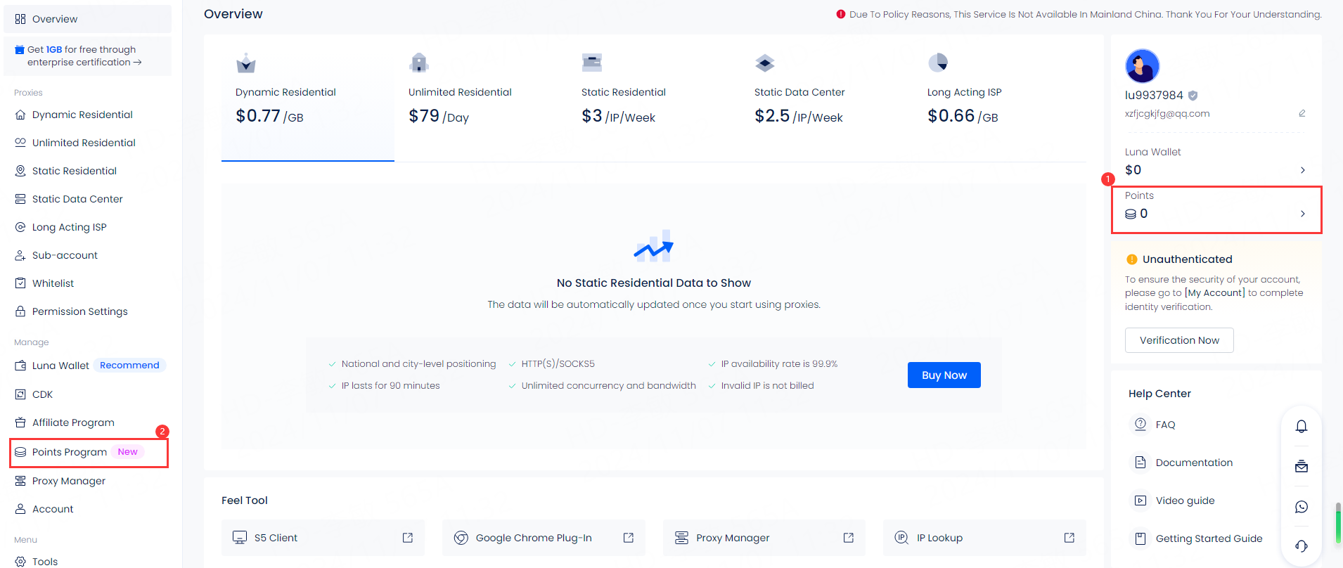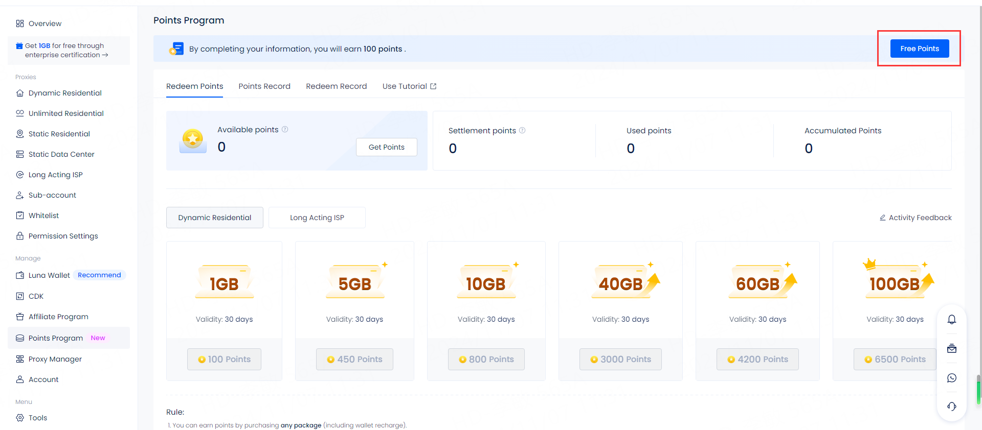 3. If a user maliciously places orders, LunaProxy has the right to cancel his/her eligibility to participate in the points reward program and freeze or clear his/her existing available points; if the above situation occurs and is effectively handled, the account returns to normal and the points will no longer be refunded.