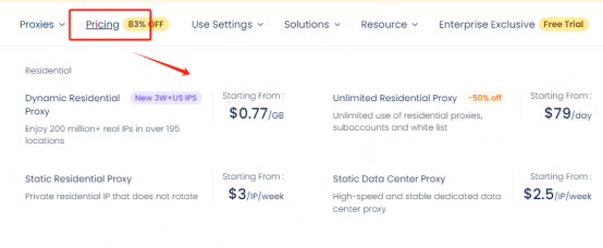 1. First log in to the lunaproxy official website and click [Price] on the upper navigation bar.