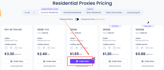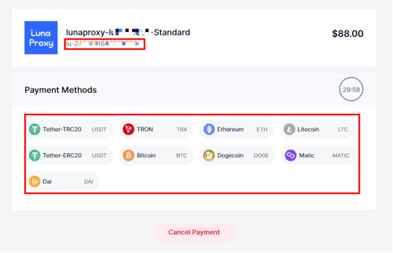 LunaProxy has five proxy packages, including dynamic residential proxy, unlimited proxy, static residential proxy, data center proxy, and rotating ISP proxy. This article takes the purchase of dynamic residential proxy as an example.