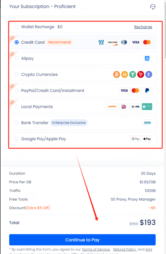 3. In the purchase interface, select the payment method you want to use, the validity period of the package, and then click [Continue To Pay]