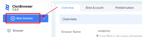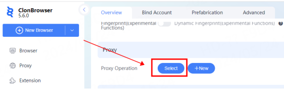 4. Click New Browser again to enter the configuration interface, and click Select in the proxy position