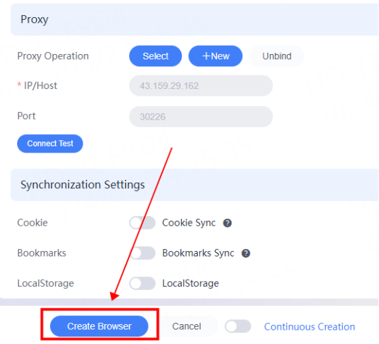 6. As shown in the figure, the proxy selection is successful, click Create Browser