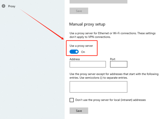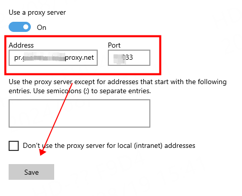 ① Switch "Use proxy server" to "On"