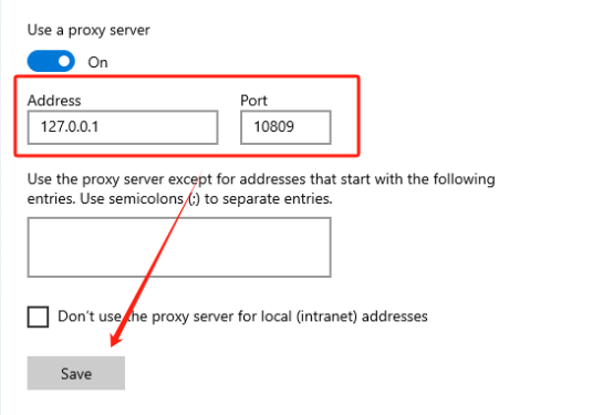 ② Fill in the residential IP and port in the "Address" and "Port" positions, then click "Save" and close the configuration interface