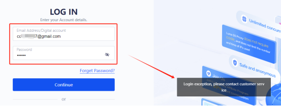 As shown in the figure, if the login interface prompts "Login abnormality, please contact customer service", it means that the IP (local IP) accessing the website is blocked due to incorrect operation during login and cannot log in