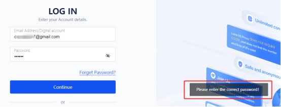 If you click to log in and the prompt "Please enter the correct password" pops up, it means that the password you entered is incorrect. If the password is entered incorrectly five times in a row, the IP (local IP) accessing the website will be detected as abnormal and blocked by the system. This is to protect the user's account security