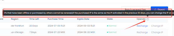 靜態IP與上述動態IP的延長方式不同,需要在IP管理界面對IP進行續費